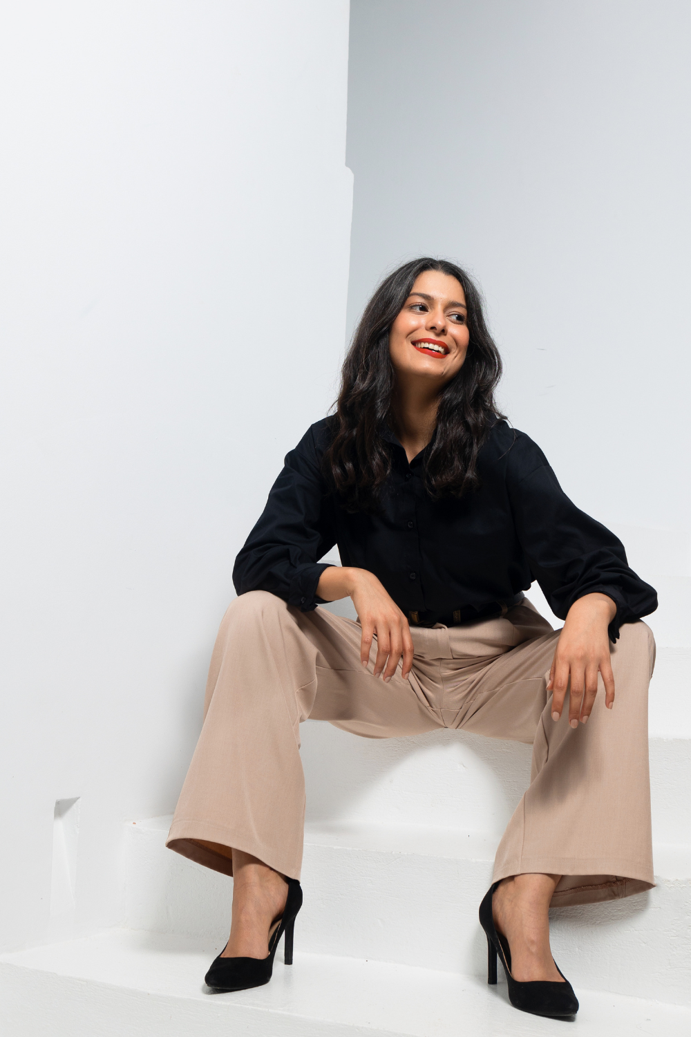 À porter sur un pantalon taille haute, rentrée dans une jupe, ou ouverte sur un débardeur – Célia s’adapte à ton style et à ton rythme.
