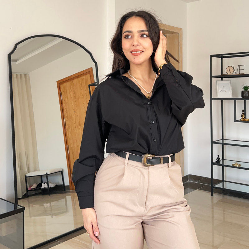 Simplicité maîtrisée. Lina, c’est la chemise basique qu’on garde toute la vie. Coupe droite, tombé fluide, tissu doux — un essentiel polyvalent.